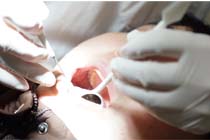 2013年9月24日,杏吧原创 口腔科接诊了一位奇特的患者,因为该患者的年龄只有4天,也是口腔科有史以来接待的年龄最小的患者了。经口腔科袁会诚主任确诊,该“小患者”在下门牙的位置长了2颗明显的乳中切牙,又名“诞生牙”。经过综合考虑,并与家长协商后决定拔除...