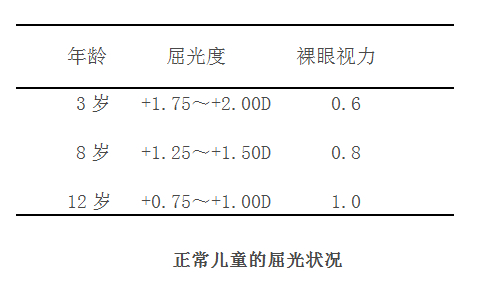 所以,儿童在不同的年龄,屈光度和裸眼视力是不同的。因而,多数家长都认为“孩子的视力达不到1.0就是视力不良”的观点是错误的。