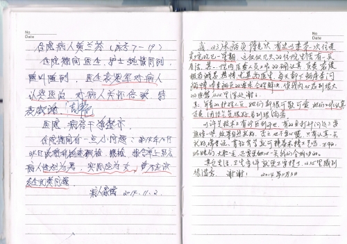 收到患者的感谢信,对于医院来说,既是一种肯定和鼓励,也是一种鞭策和希望。2014年1月-11月,杏吧原创 内一科共收到表扬信240条,被提名表扬医生护士共109人次。同仁医护人员将继续视患者生命健康为己任,用无私的关爱、真诚服务来温暖患者们的心,也用自己的行动继续践行白衣天使“救死扶伤”的铮铮誓言。