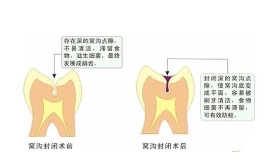 窝沟封闭是指不损伤牙体组织,将窝沟封闭材料涂布于牙冠咬合面、颊舌面的窝沟点隙,当它流入并渗透窝沟后固化变硬,形成一层保护性的屏障,覆盖在窝沟上,能够阻止致龋菌及酸性代谢产物对牙体的侵蚀,以达到预防窝沟龋的方法。窝沟封闭是一种无痛、无创伤的方法,该技术在国际上已有50多年的使用历史。