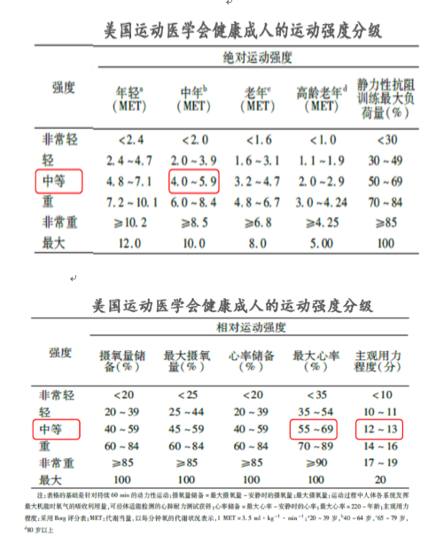 例如,患者最大心率160次/min、静息心率70次/min、选择的运动强度为60%,则其运动训练的目标心率=(160-70)× 60%+70=124次/min。其中“最大心率”=220-年龄。