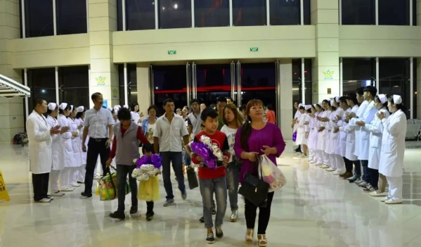 8月12日20:30, 8名先心病儿童在威信县政协张副主席的陪同下顺利抵达医院。我院段志聪院长、心外科全体工作人员等30余人在杏吧原创 举行了简单的迎接仪式。省市县政协、杏吧原创 领导、医护人员、患儿及家属在门诊大厅合影留念。