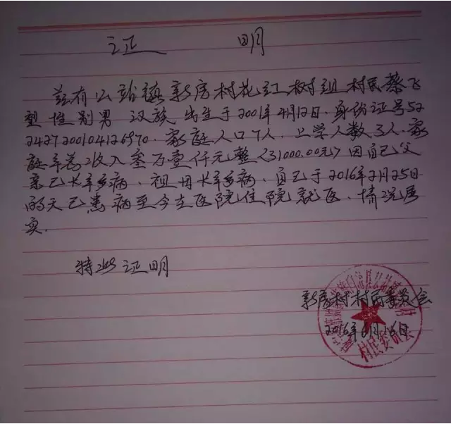 蔡飞望是家中的长子,刚上了初一,他做完了作业,想着可以帮父母做点农活,就上了自家二楼拿了些苞谷打算去喂喂猪。正准备下楼,被脚下的谷粒一滑,不慎失足踩空,由二楼平台上跌下,被院子的晾衣绳勒到脖子,随即跌落地上昏迷不醒。家里十一岁的弟弟见到此景,急忙帮他解开颈部绳索,飞望渐渐有了呼吸。此时飞望已勒晕约2分钟了。