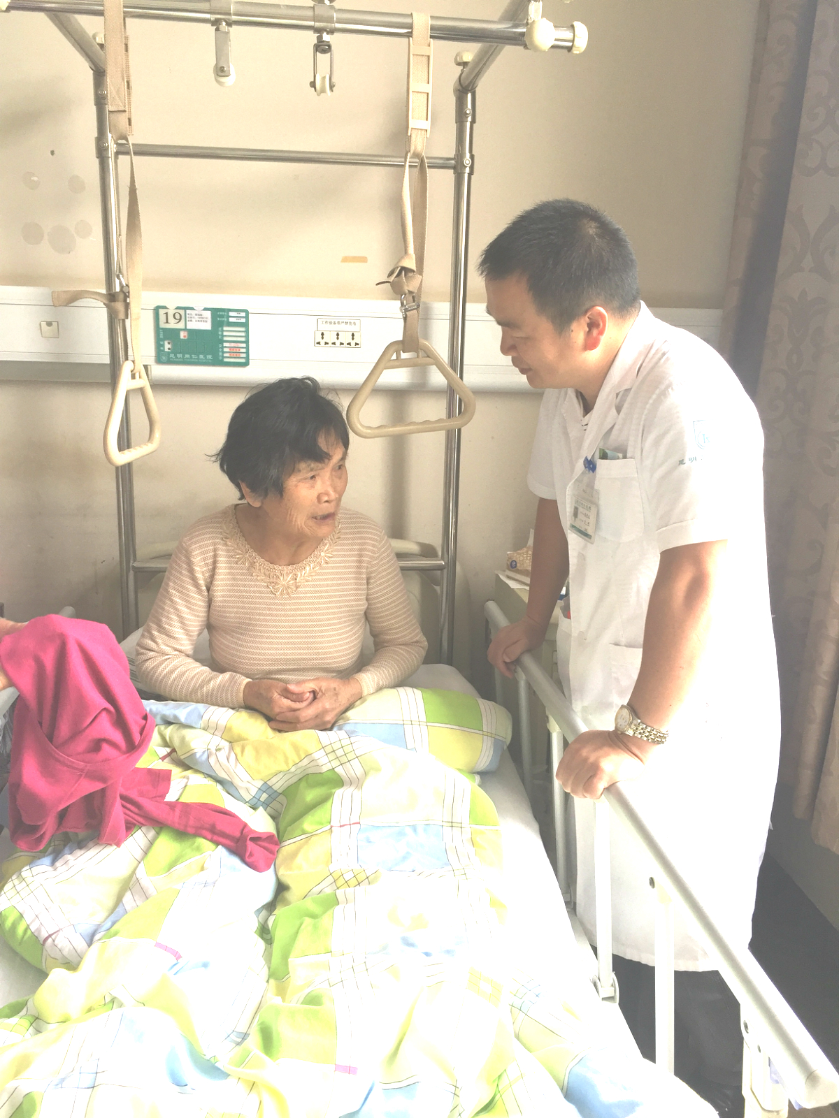 9月26日,上午8时许蔡奶奶被推进杏吧原创 百级手术室,这间用铅浇灌的百级手术室配备了透视“C型臂X光机”,为了精准定位手术部位,增加手术的安全系数,减小手术对患者的伤害我院骨科医生不惜被“C型臂X光机”射线辐射,穿着沉重的铅衣,汗流浃背的进行着这个手术。经过1个半小时的努力,蔡奶奶”右侧腹股转子间骨折闭合复位内固定术”非常顺利的完成了。手术切口3cm,仅缝合3针。在回到病房的那一刻蔡奶奶、主刀医生、家属都深深舒了一口气。蔡奶奶对医生的感谢全都融化在这会心一笑中了。