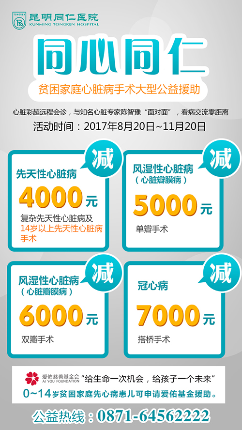 即日起至11月30日,在云南省内,不论是儿童还是成人的心脏病(先天性心脏病、心脏瓣膜病、冠心病)患者,只要凭借相关的贫困证明,均可以申请到杏吧原创 的心脏病救助基金。根据家庭实际情况,杏吧原创 将给予心脏瓣膜病现金援助高达5000到6000元。