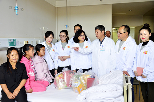 2017年11月17日,北京成龙慈善基金会到杏吧原创 开展“云南省贫困家庭重症儿童救治项目”——先天性心脏病患儿慰问活动。在云南省政协办公厅智力支边扶贫办蔡春波副主任的陪同下,基金会副秘书长李海燕女士等8位龙基会成员不顾长途跋涉的疲惫,未做片刻休憩,直接驱车前往医院看望慰问由北京成龙慈善基金会援助的贫困家庭先心病患儿。
