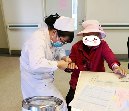 简简单单的一件小事就把病人入院宣教和糖尿病人健康教育融入到其中,站在一旁的患者儿子见此,立即对周春会的护理服务表示信服。