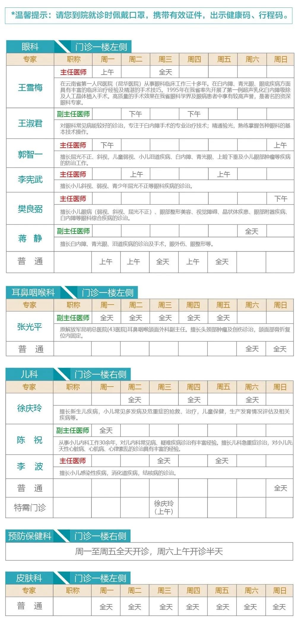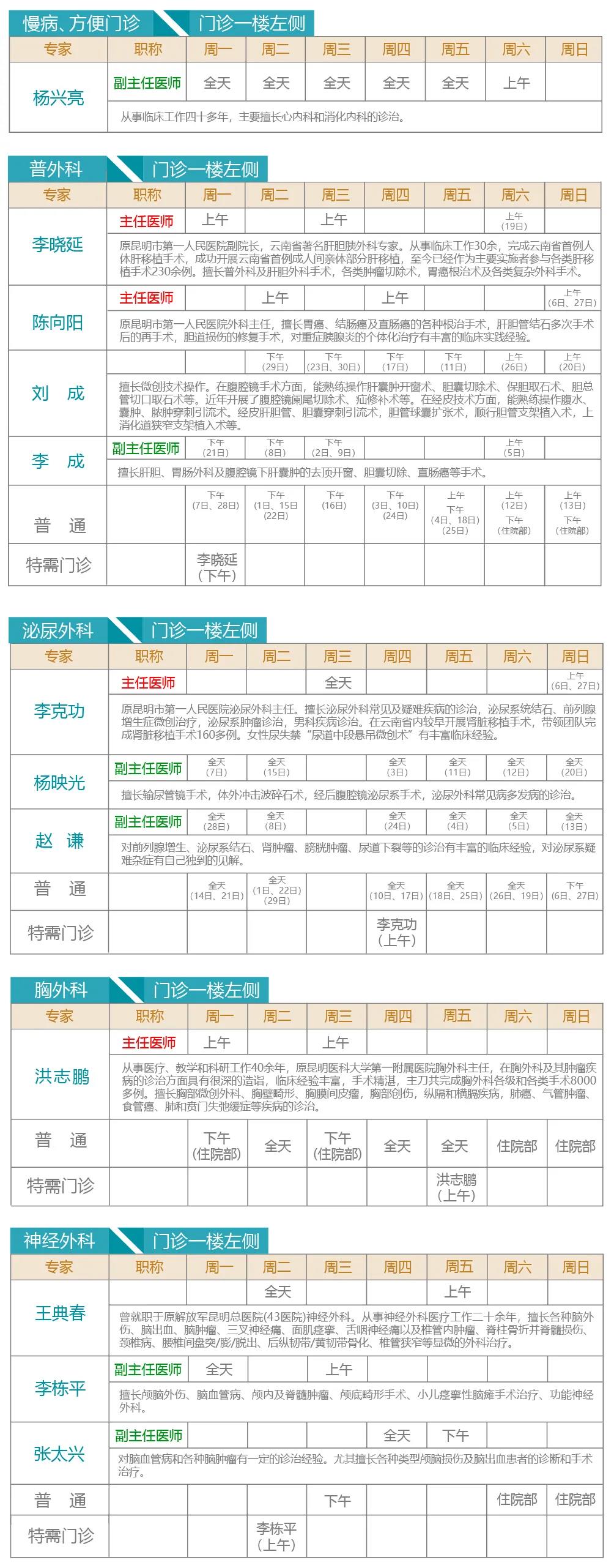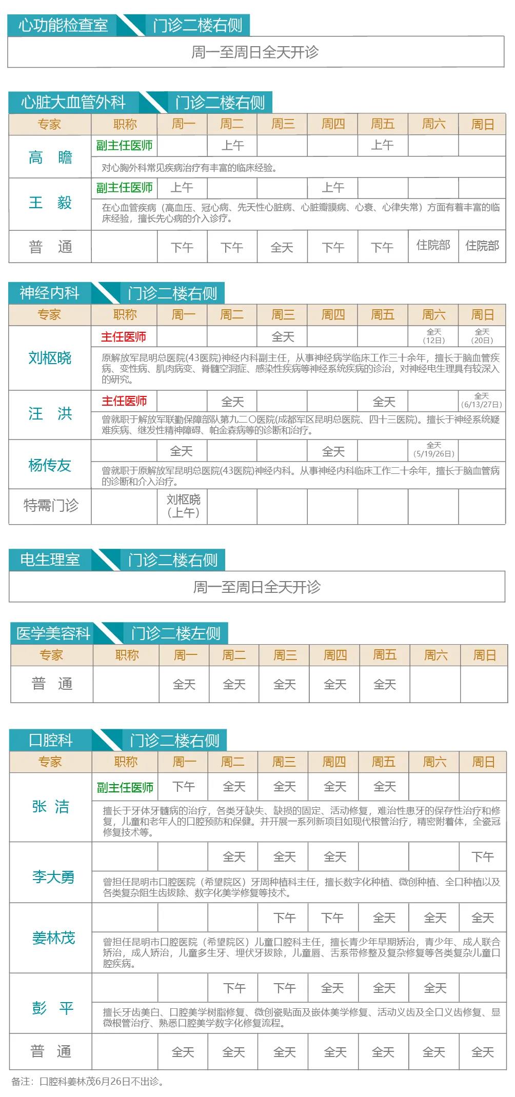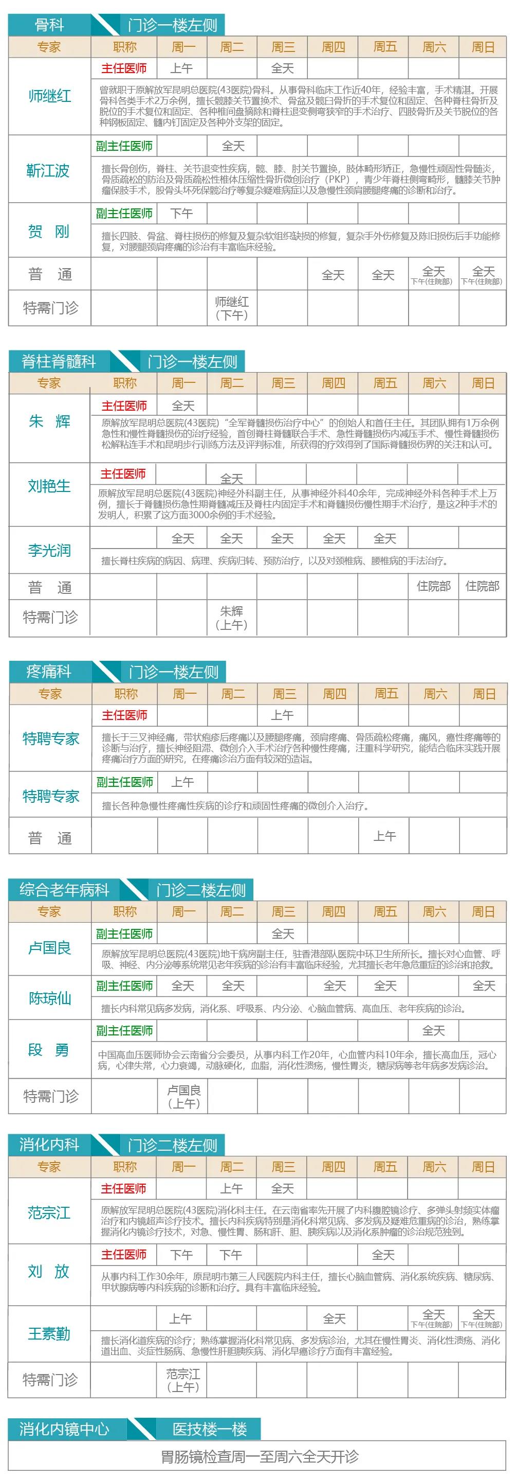 注:出诊专家如有临时变动以当天实际坐诊为准。