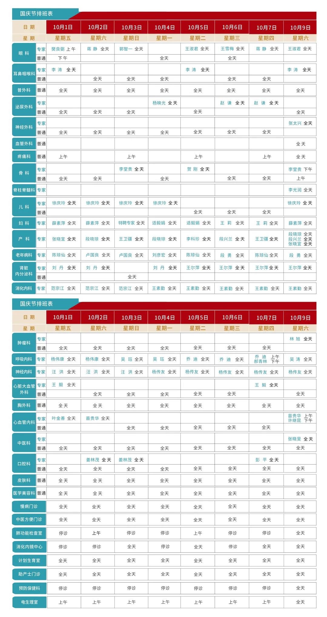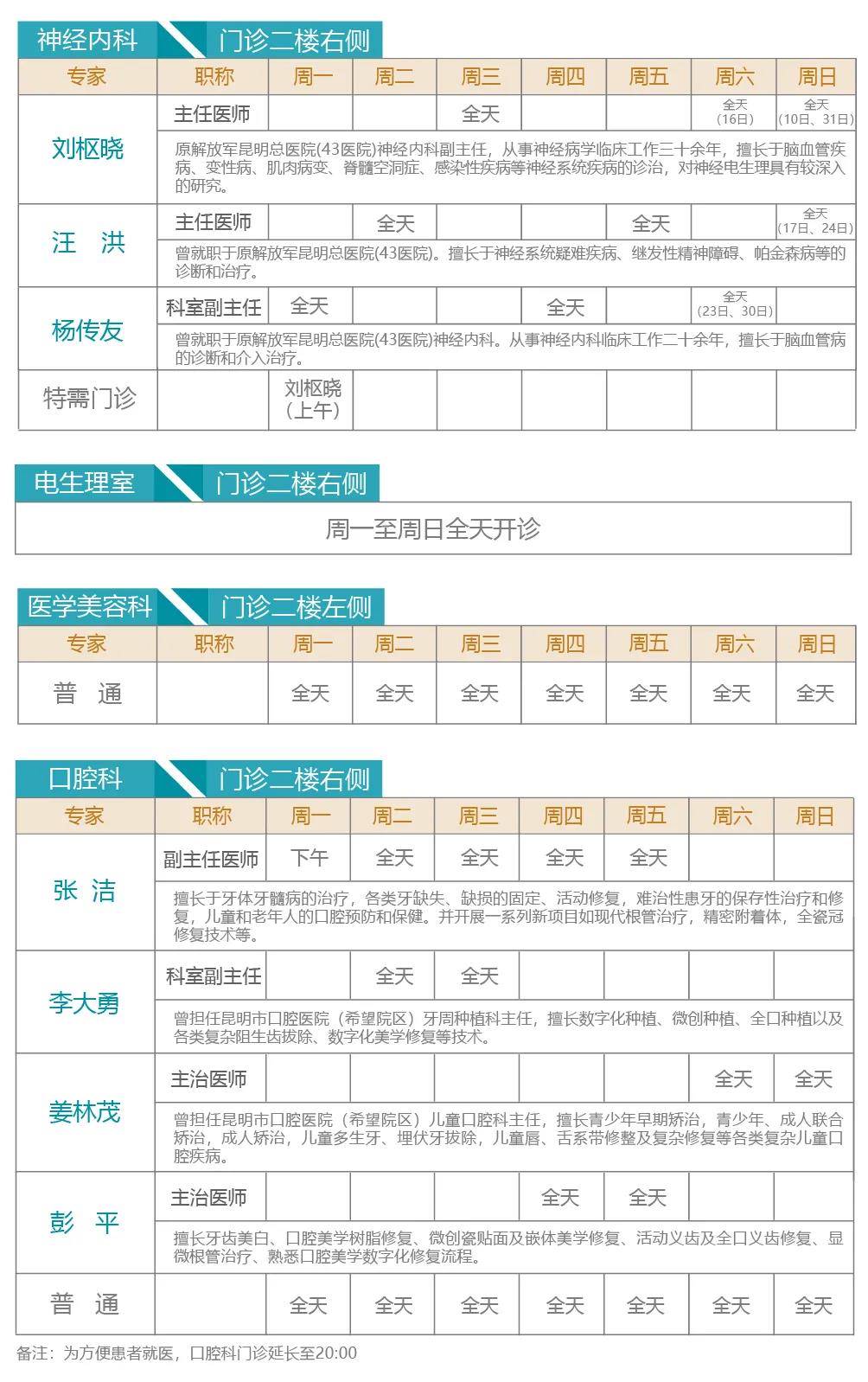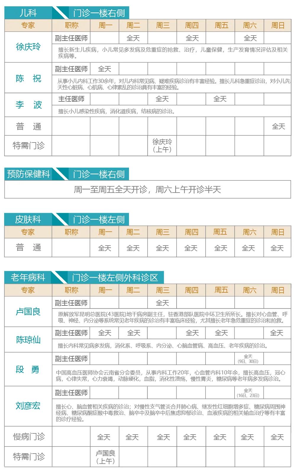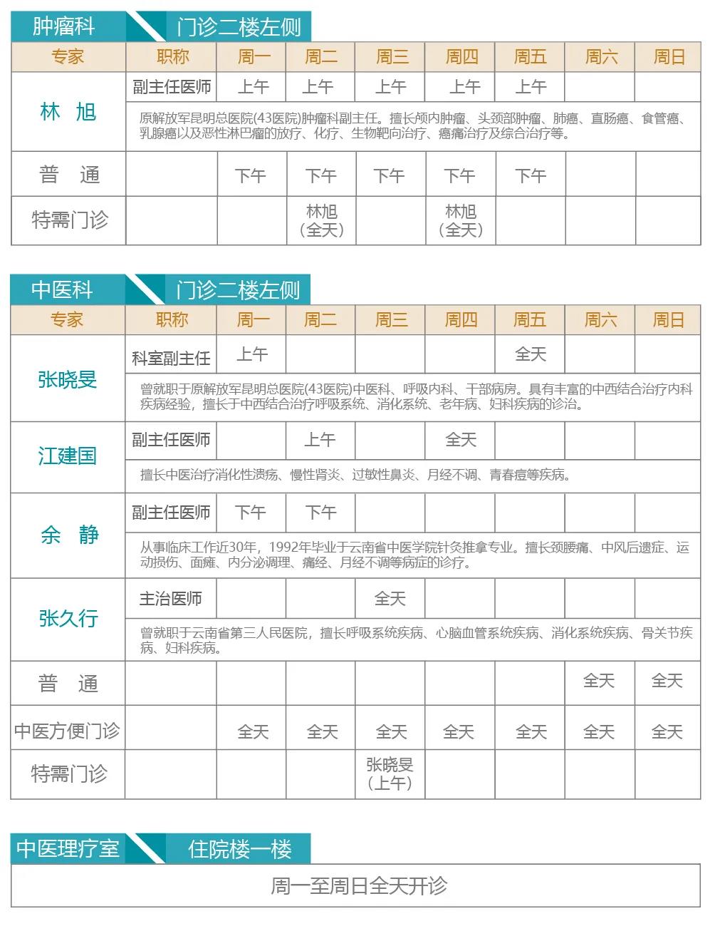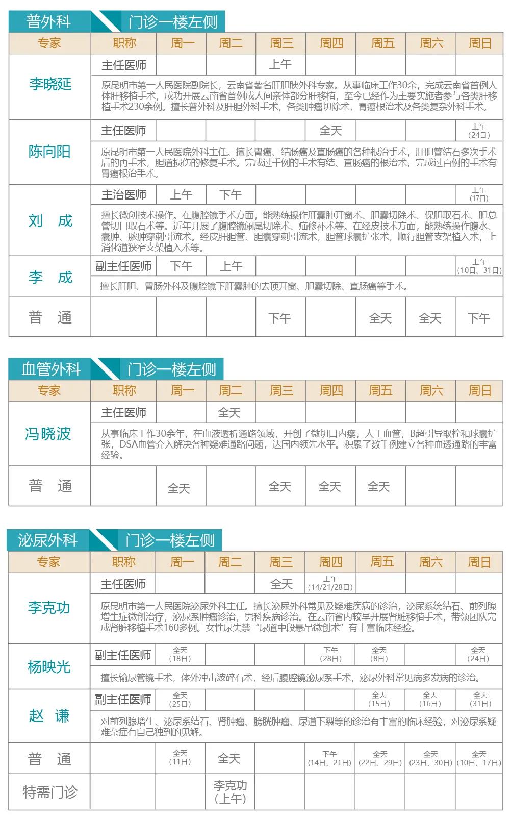 注:出诊专家如有临时变动以当天实际坐诊为准。