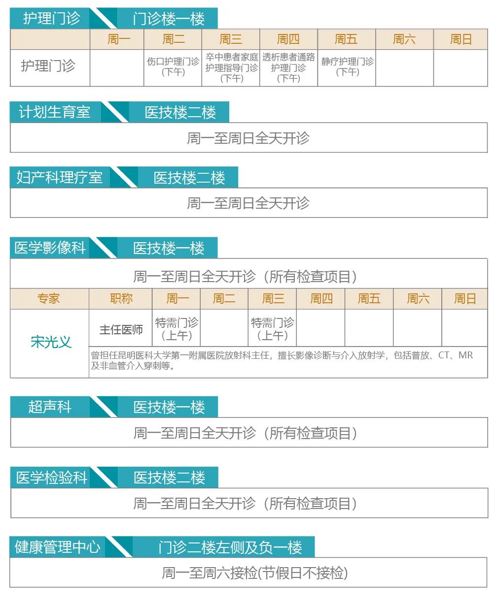 核酸检测、新冠疫苗接种正常开展(新冠疫苗接种时间是10月5、6、7日上午8:30—12:00,地点位于住院部大厅。建议您来院前,提前在“云南健康码”小程序上预约和查询。)