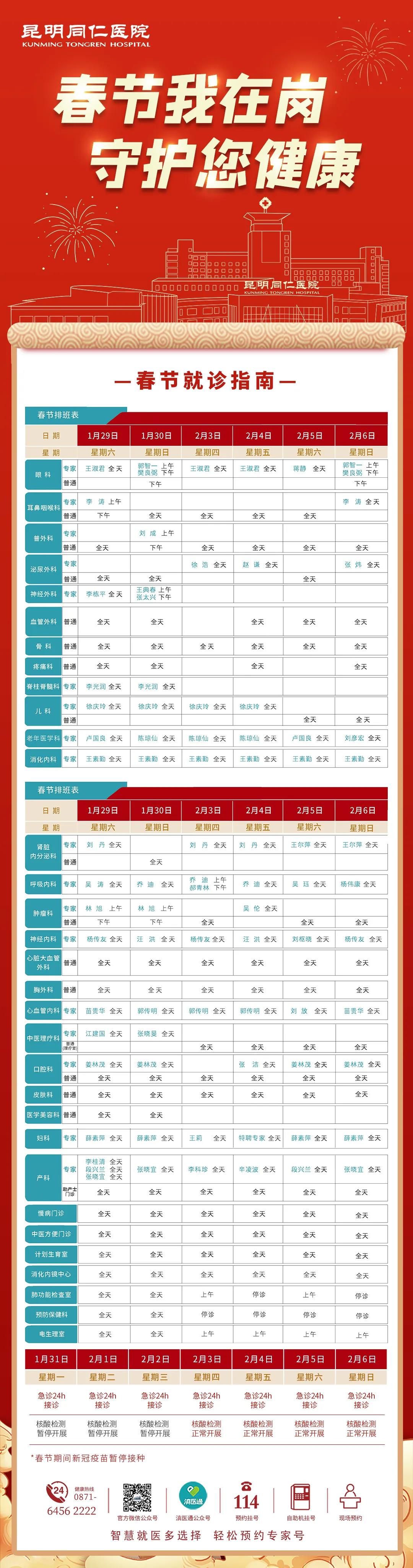 1月31日(除夕)、2月1日(初一)、2月2日(初二)门诊停诊,2月3日(初三)起门诊恢复接诊。