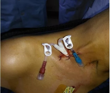 对于血透患者而言,中心静脉置管是指通过一种外科手术方法,将血透导管插入患者的中心静脉内,从而方便建立体外血液循环,满足血液透析治疗需要的血管通路方式。最常用的中心静脉置管方法有颈内静脉置管、颈外静脉置管以及股静脉置管。