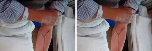 触:病友们应练习触诊内瘘,根据术后宣教护士指导的触诊位置,感受自己内瘘的震颤,部分病友可能因为皮下脂肪较厚或局部敷料较厚等原因,震颤不容易触及。