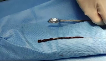 自体内瘘闭塞后术中取出血栓▲