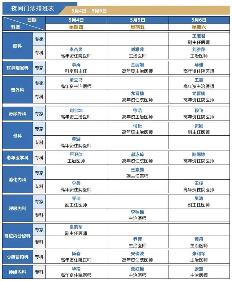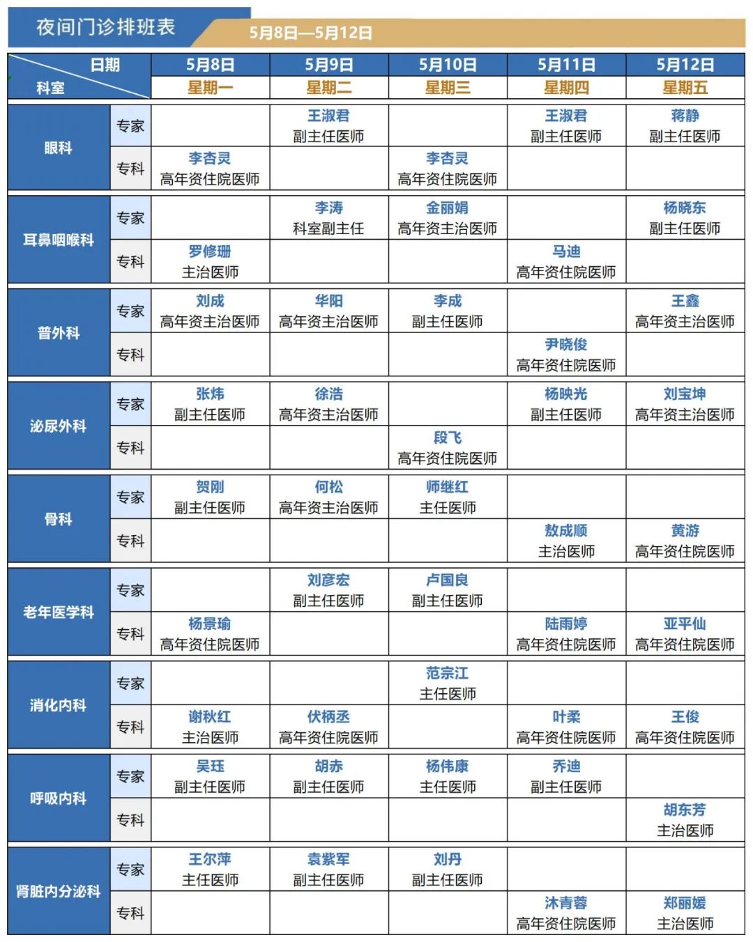 ·杏吧原创 4月22日—4月26日夜间门诊排班