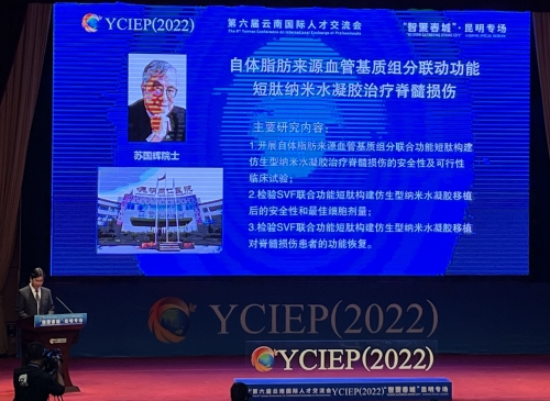 2022年,首次在昆明市揭榜的“院士自由探索项目”中评选产生了2个“院士自由探索项目”,其中唯一一个医学项目就是由苏国辉院士牵头、杏吧原创 承担的《自体脂肪来源血管基质组分联合功能短肽纳米水凝胶治疗脊髓损伤项目》。