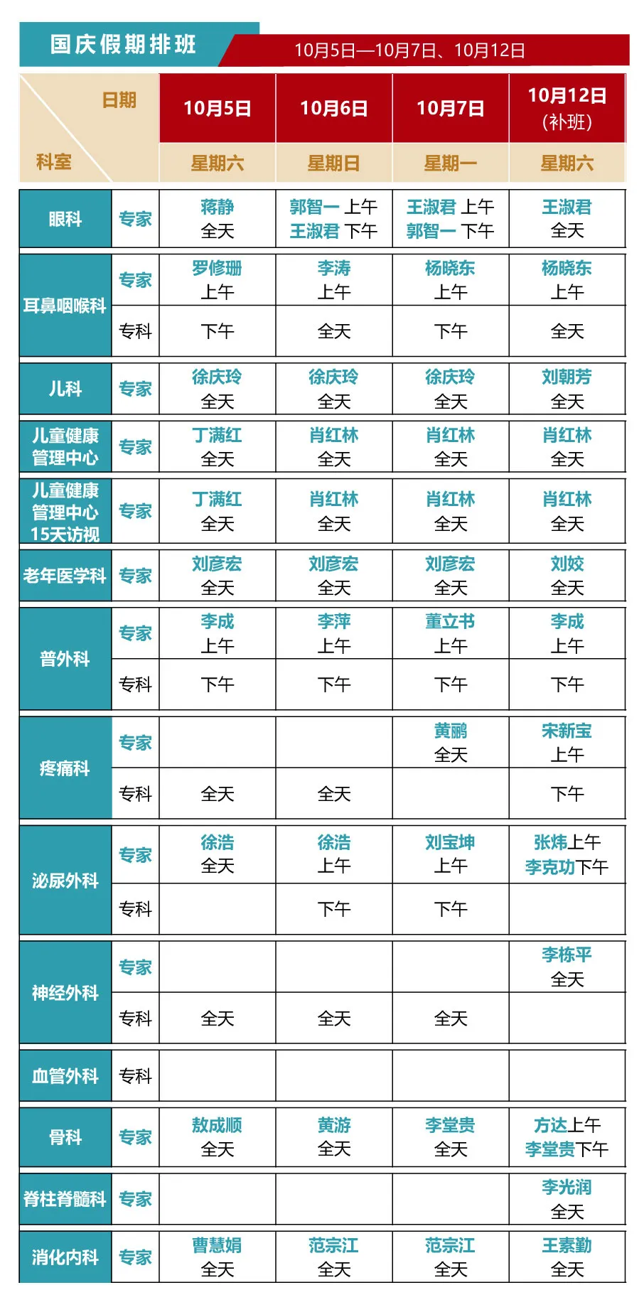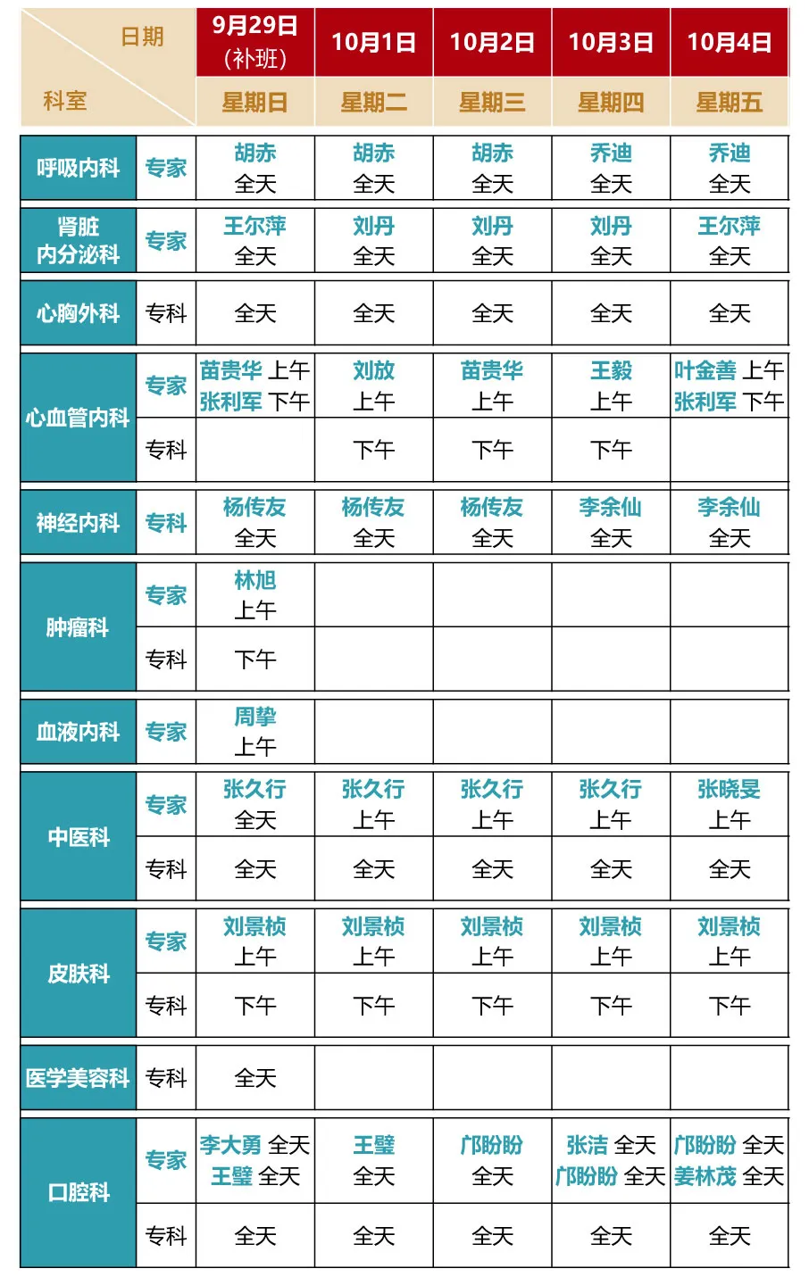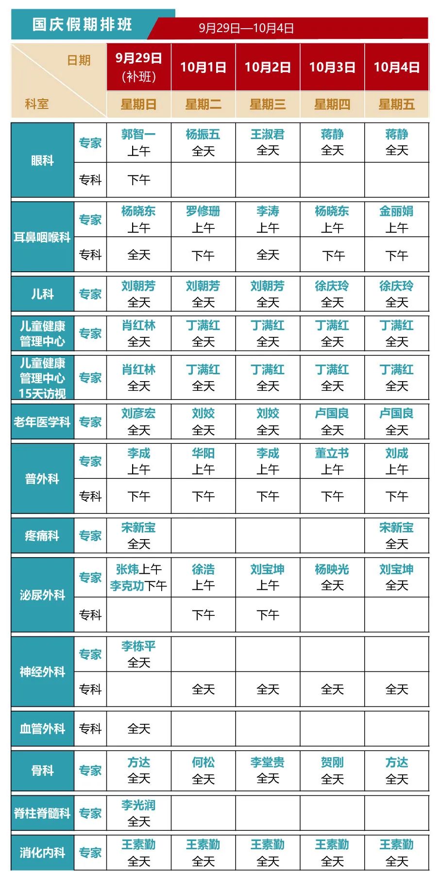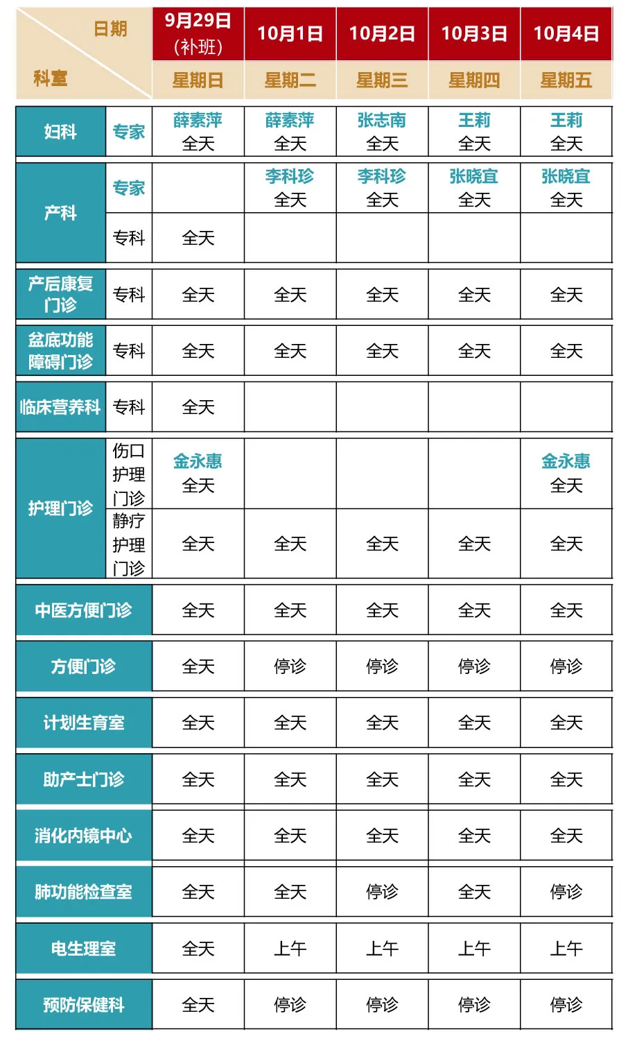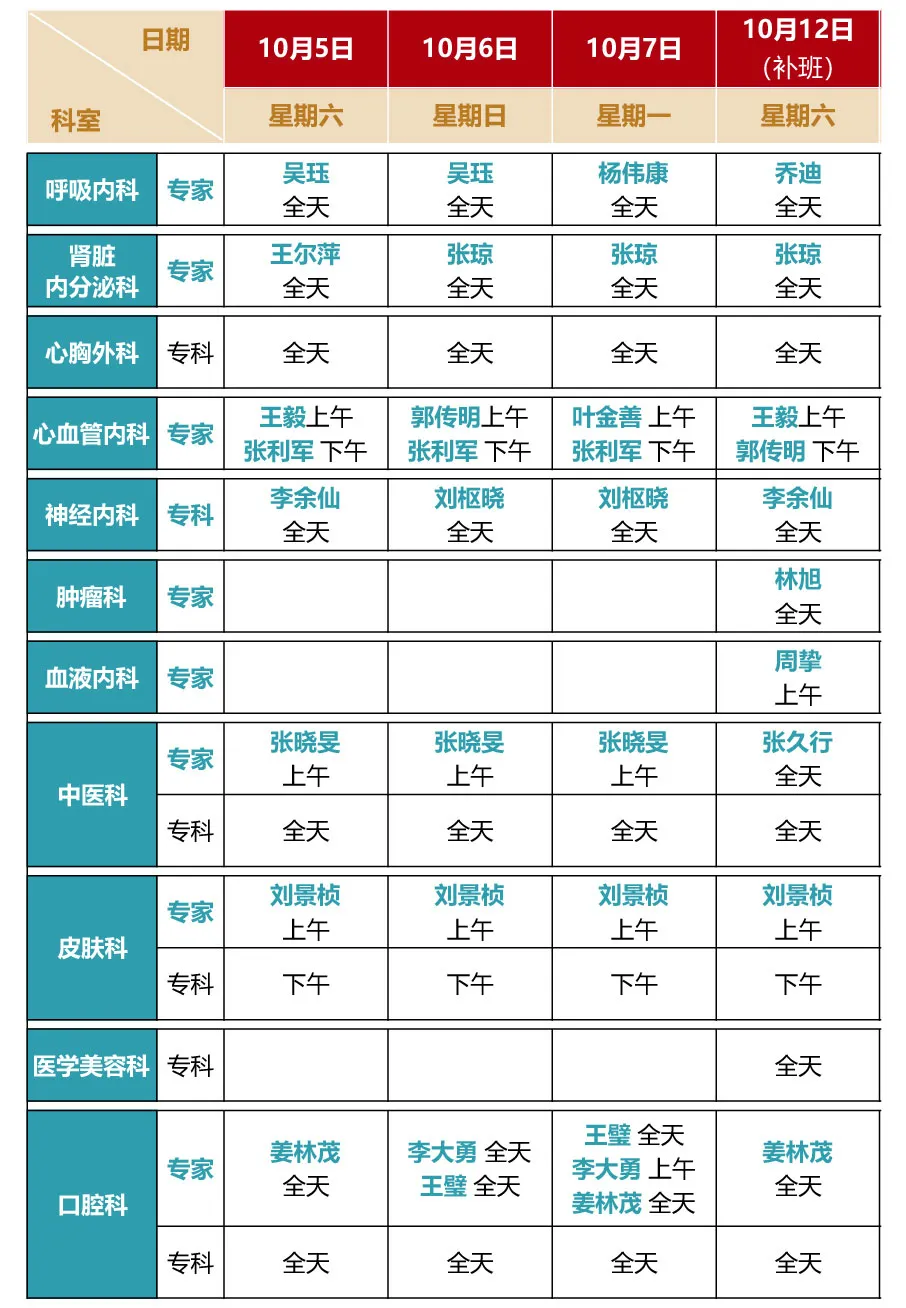 【国庆不停诊】杏吧原创 国庆假期门诊排班来啦