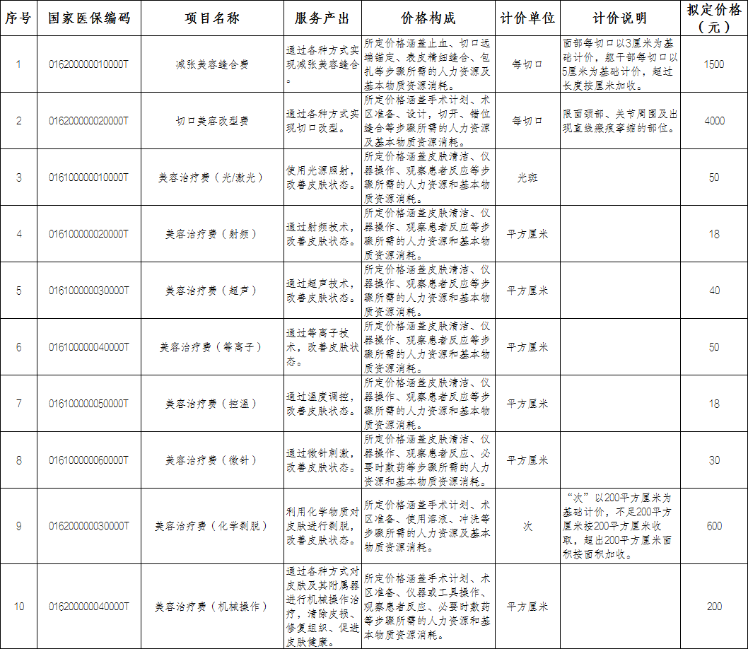 根据《云南省医疗保障局 云南省卫生健康委员会关于新增和规范美容整形类医疗服务价格项目的通知》(云医保〔2025〕41号)文件精神,对授权医疗机构制定试行价格的医疗服务项目必须在执行前一周进行公示。我院依据医疗服务项目成本测算情况,本着公平合理、诚实信用、质价均等的原则,结合考虑患者承受能力等因素制定试行价格,现将价格公示如下: